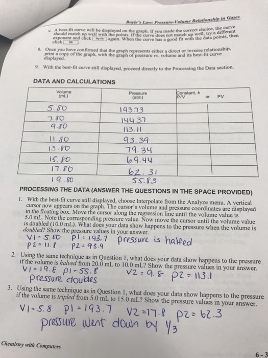 Solved Lab Instructor Date Name Experiment 8Gas Laws Experiment 6 Lab 8 Gas Laws predict pressure at a given volume, or vice versa, using boyle's law. Using the ideal gas law to determine purity of a zinc sample. Remember, the lab may change or be modified. Identify the dependent and independent variables in an. name siti nur afiqah binti mahazan. The main purpose for experiment 8: this experiment investigates the gas. Experiment 6 Lab 8 Gas Laws.